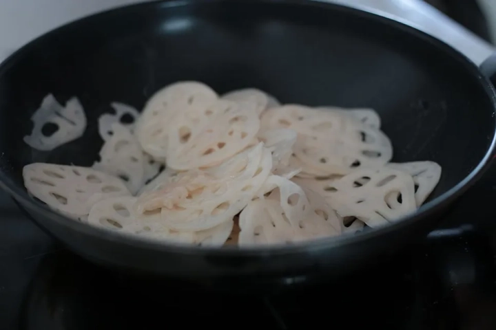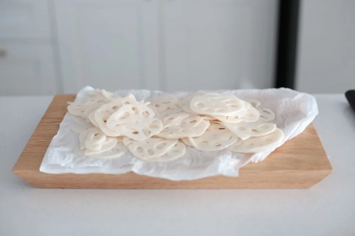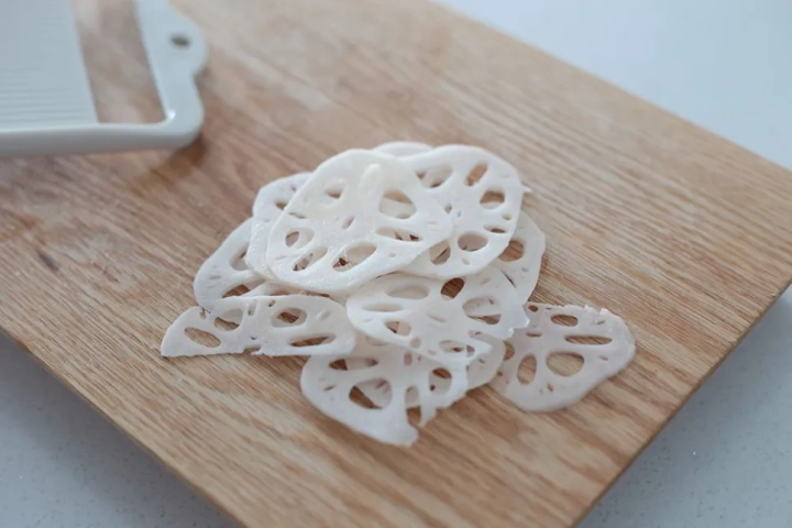 연근은 깨끗하게 손질하고 얇게 슬라이스해주세요.