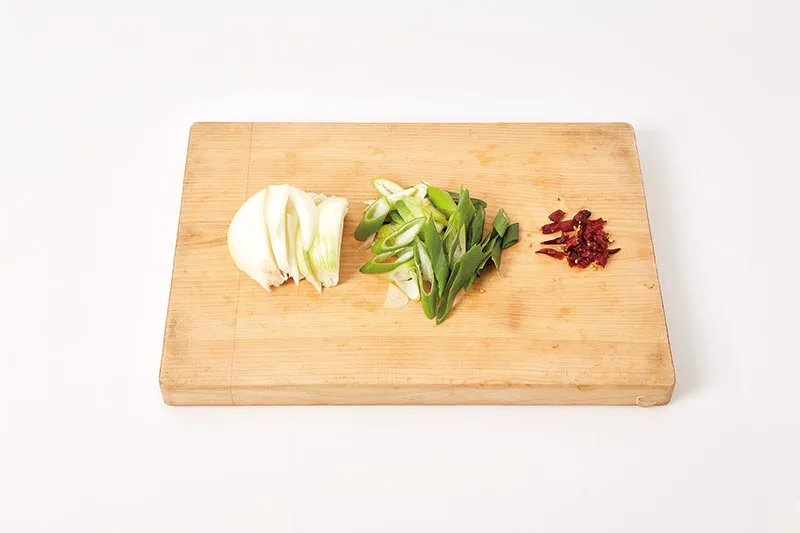 양파는 채를 썰고, 대파는 어슷하게 썰어주고