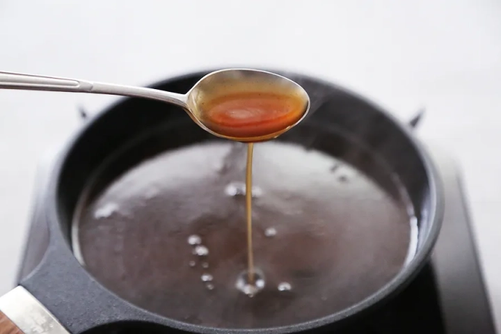 소스가 끓어오르면 전분물을 조금씩 추가하면서