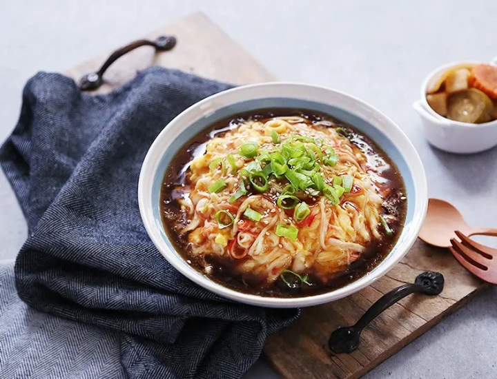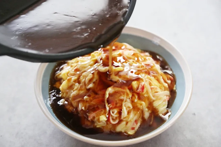 오므라이스에 중식풍 소스가 더해진 달걀덮밥,