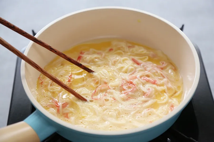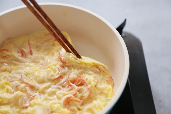 젓가락으로 가볍게 몽글몽글 섞어주세요.