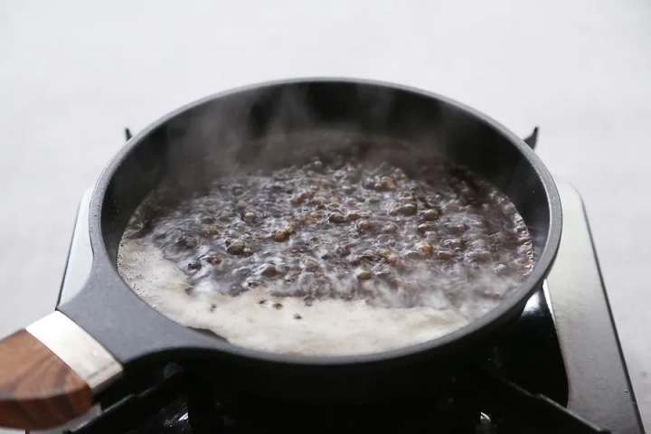 프라이팬에서 자유롭게 움직일 정도로 익혀주세요.
