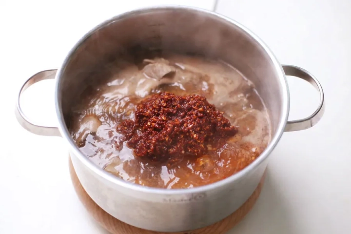 고기가 부드럽게 익으면 양념장을 넣어주세요.
