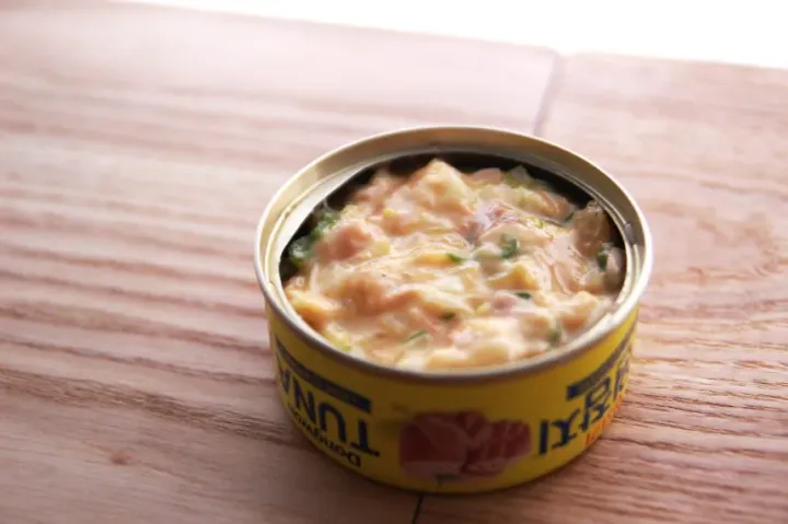 잘 섞은 반죽을 참치캔에 넣어서 모양을 잡아주세요