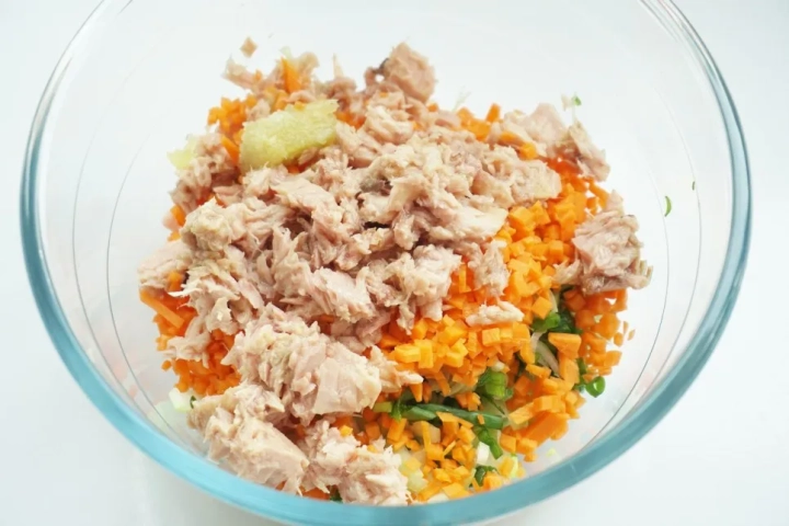 기름을 두른 팬에 참치캔 안에 있는 반죽을 올리고