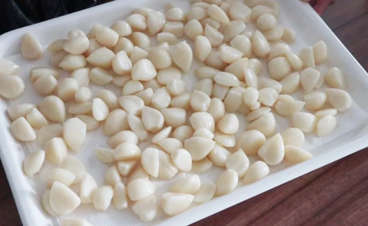 마늘은 속껍질까지 야무지게 벗겨내고 깨끗하게 씻어주세요.