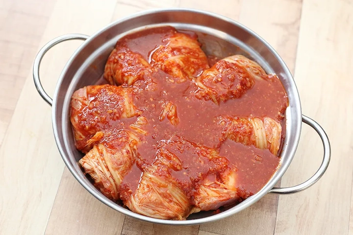 김치국물 1종이컵, 맛술 1큰술, 생강즙 1큰술, 후추