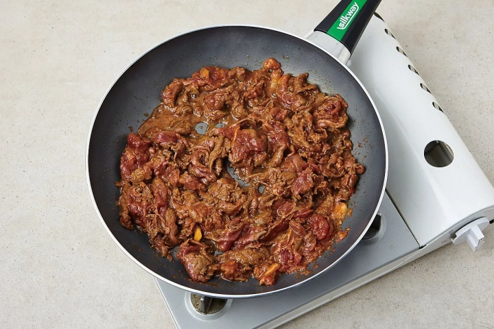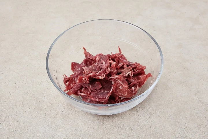 달군 팬에 기름을 두르고 소고기를 넣어 빠르게 볶아주세요.