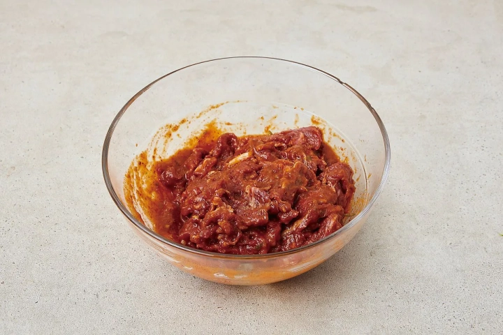 양념장에 소고기를 넣어 버무리고 20분 정도 재워주세요.
