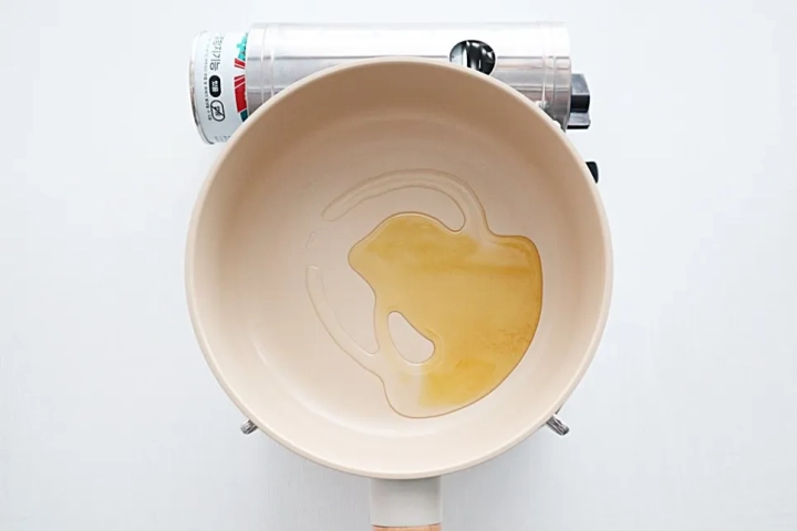 달궈진 팬에 들기름 3큰술 둘러주세요.