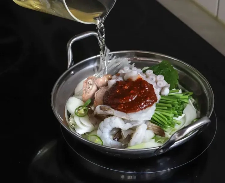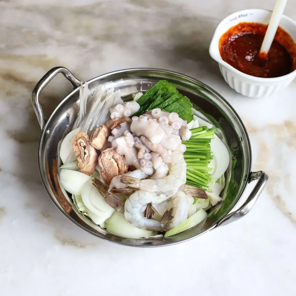 깨끗하게 손질한 낙지, 곱창, 새우 모든 재료들을 담아주세요.