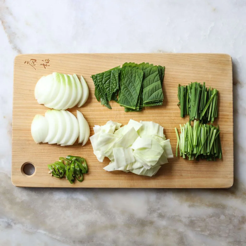 양파 1개, 양배추 4장, 부추 한줌, 청양고추 2개,