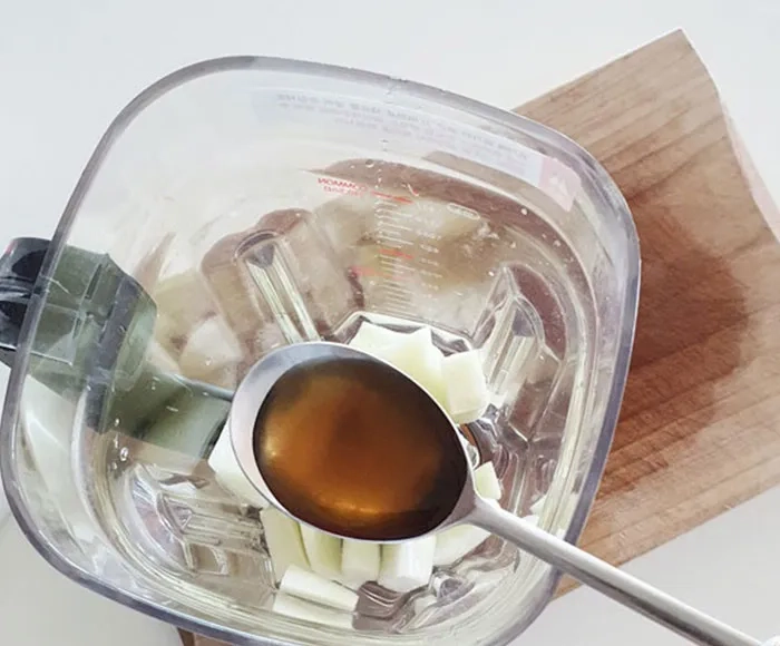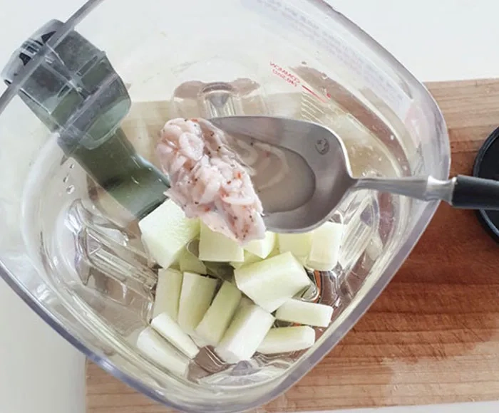 찬밥, 새우젓, 멸치액젓을 더해 믹서기에 곱게 갈아주세요.