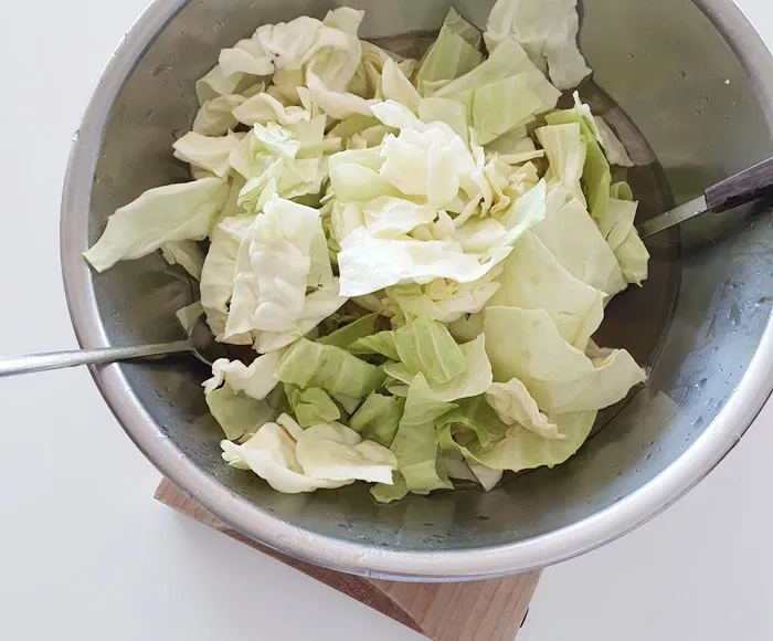 깨끗하게 세척한 양배추를 적당하게 잘라