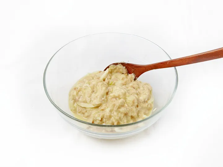 기름기를 제거한 참치와 양파를 넣어 골고루 버무려주세요.