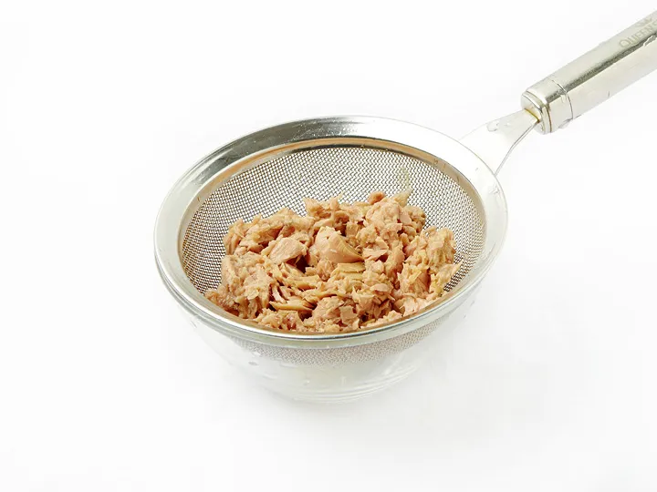 통조림참치는 체에 받쳐 기름기를 제거해주세요.
