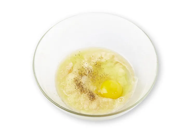 곱게 간 감자에 달걀, 밀가루, 소금, 후추를 넣어 섞어주세요.