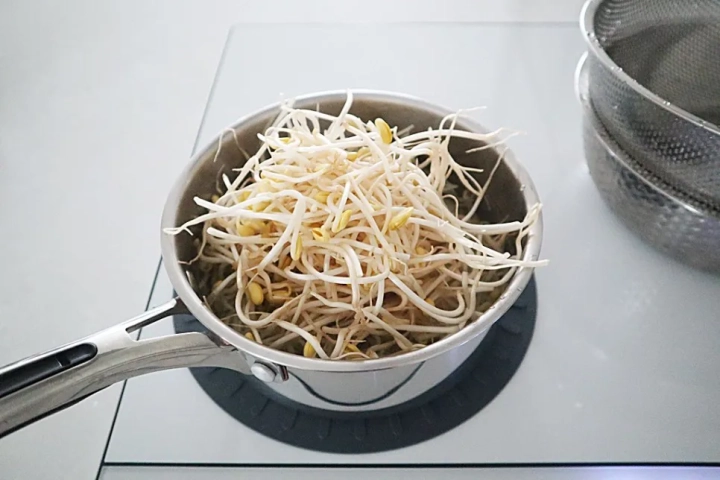 데친 콩나물은 찬물에 헹궈 열기를 식혀주고