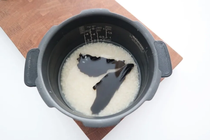밥솥에 쌀을 담고 다시마를 넣은 후