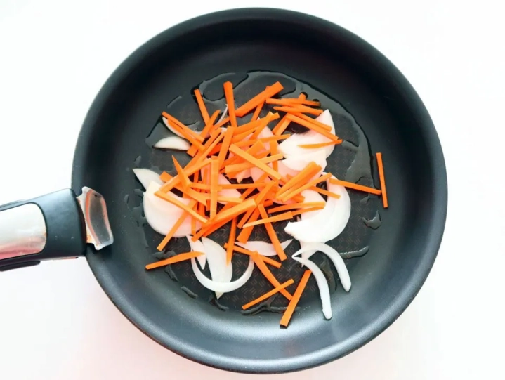 양파가 투명해지고 당근이 익으면 감자를 넣어 볶아주세요.
