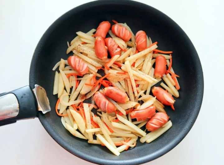 소시지에 이미 간이 배어 있기에 소시지 넣기전