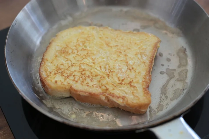 약불에서 식빵을 앞뒤 노릇노릇하게 구워주세요.