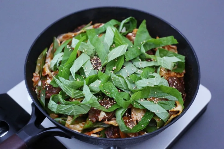 마무리로 깻잎 더해 가볍게 섞어주면 완성~