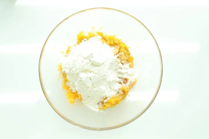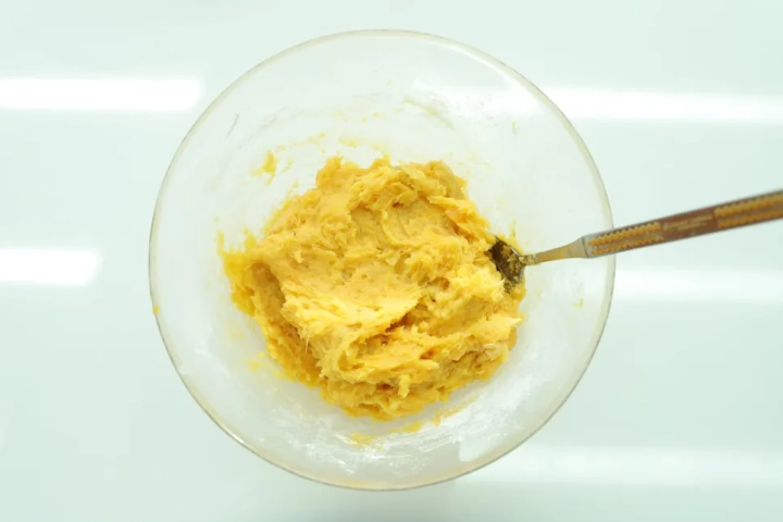 으깬 고구마에 핫케이크가루 더해 골고루 섞어주세요.