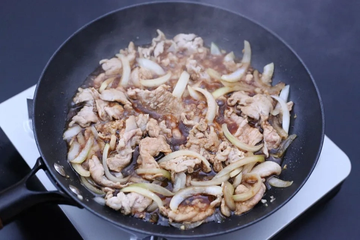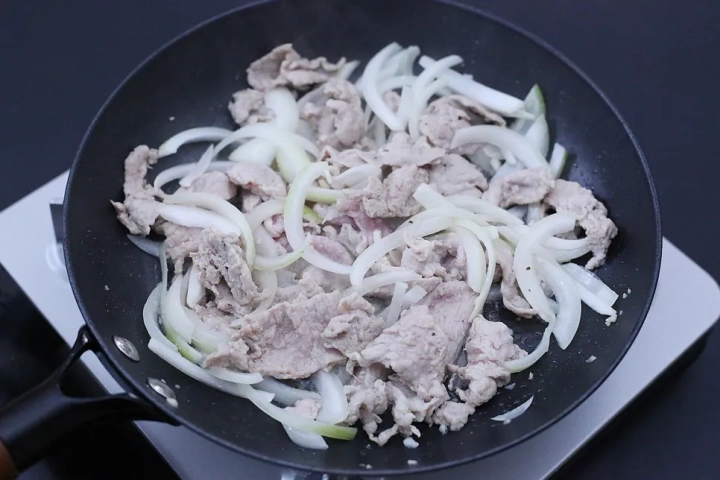고기가 거의 익으면 양파를 넣어 볶아주세요.