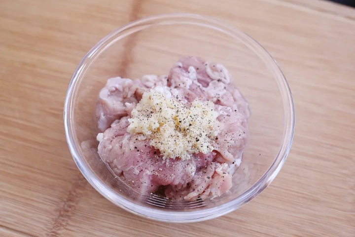 [밑간재료]: 맛술 1큰술, 다진마늘 1/2큰술, 후추 약간