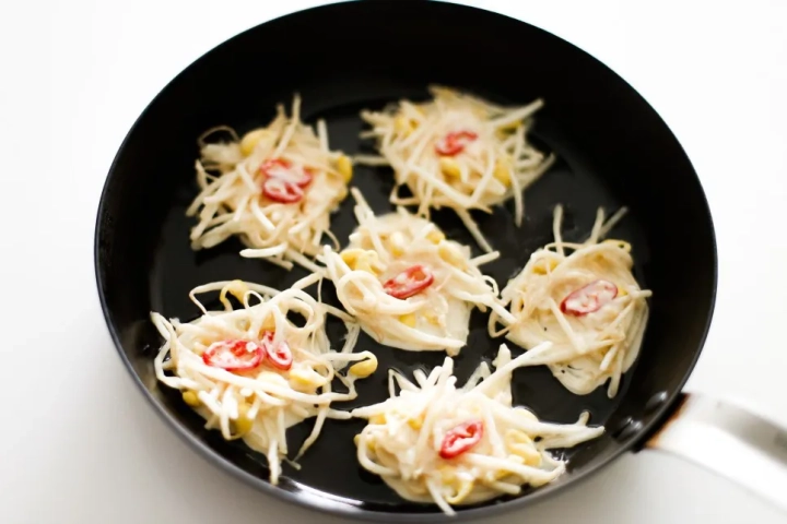 콩나물 반죽을 너무 두껍지 않게 가지런히 깔아주고