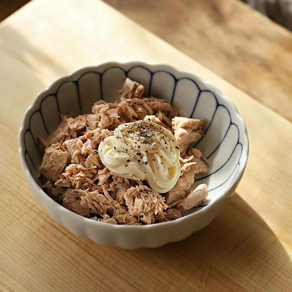 [참치마요재료]: 참치캔 1개, 마요네즈 2큰술, 후추 약간