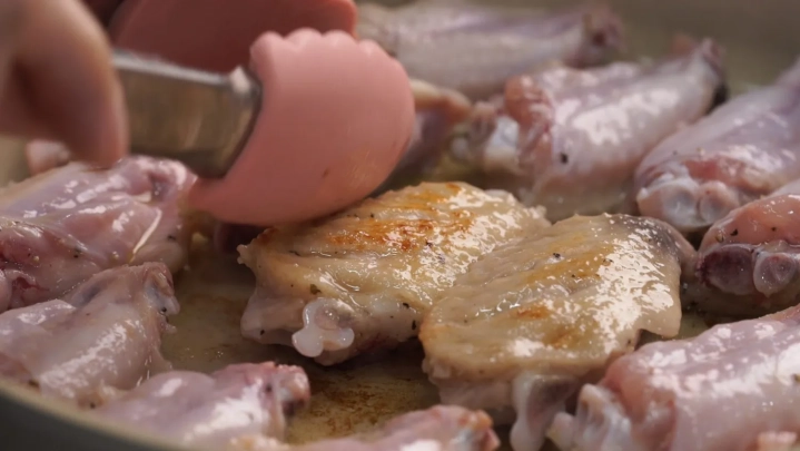 닭날개를 앞뒤 노릇노릇하게 구워주세요.