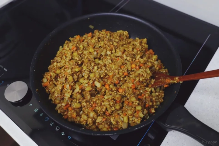 [재료]: 카레가루 80g, 다진돼지고기 400g,