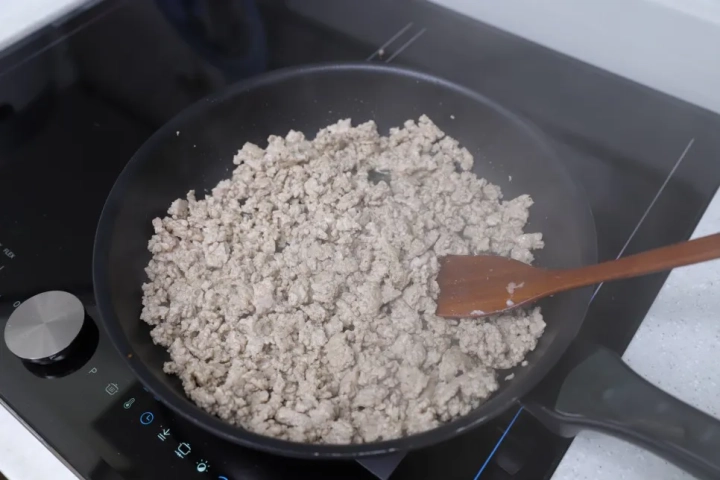 다진돼지고기는 열을 가하면 꽉 뭉치기때문에
