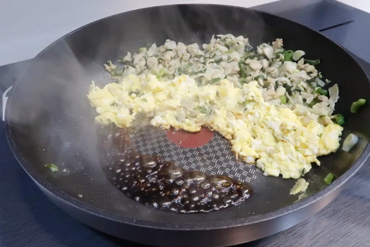 빈 공간에 달걀물을 부어 스크램블에그를 만들어주세요.