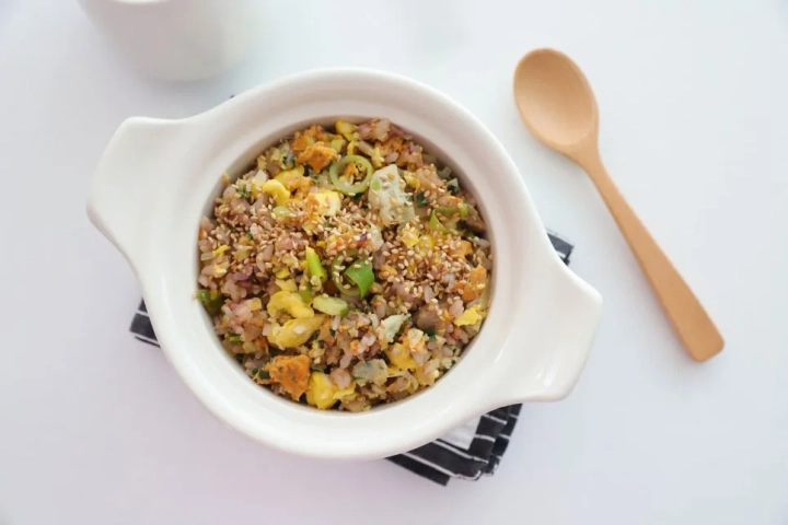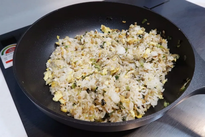 밥이 모두 볶아지면 불을 끄고 참기름 둘러주고