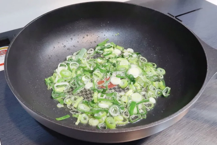 대파를 넣은 뒤 센불로 볶아 파기름을 내주세요.
