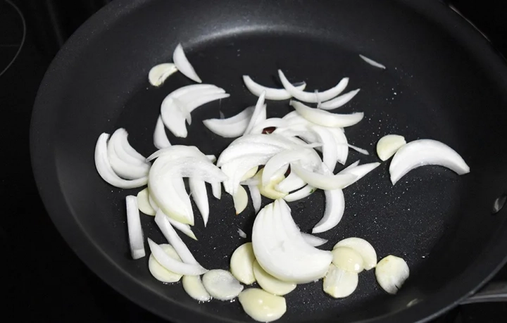 팬에 식용유를 두르고 마늘을 볶다가