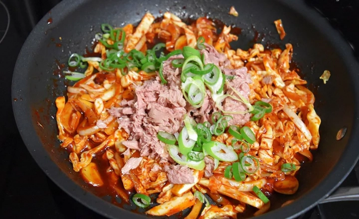 참치와 대파를 넣고 볶아주고