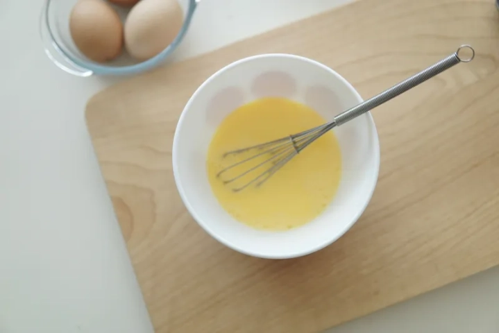 계란을 풀어 우유 3큰술을 더해주고