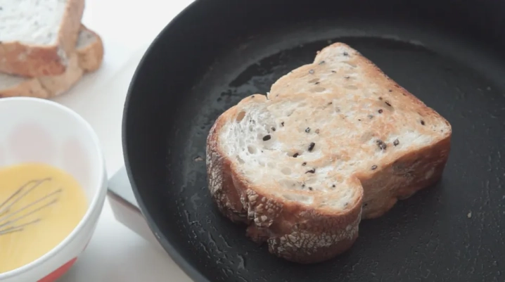 버터를 녹인 팬에 식빵을 노릇노릇하게 앞뒤로 구워주세요.