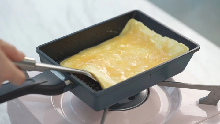 계란을 풀어 예열된 팬에 지단을 부쳐주세요.