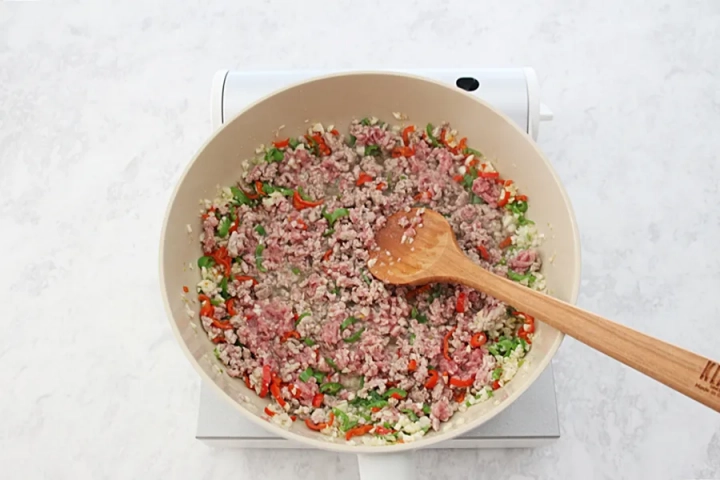 뭉쳐지지 않게 풀어주면서 볶아주세요.