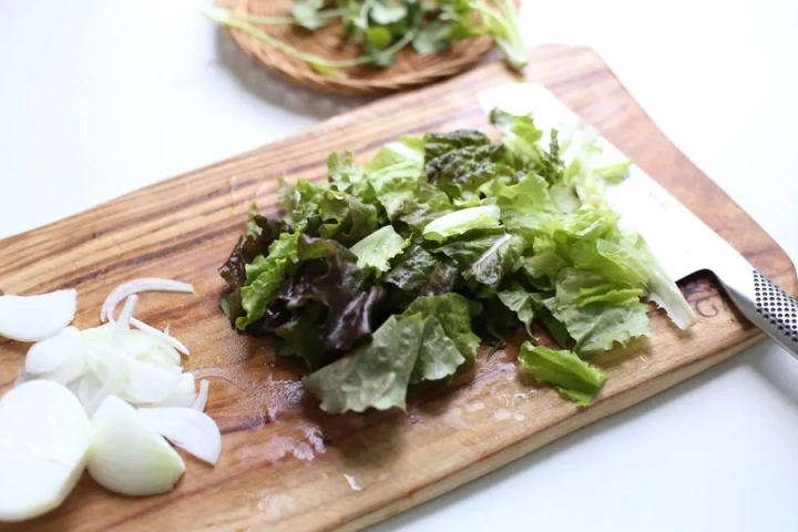 양파, 상추는 먹기 좋은 크기로 썰어주세요.