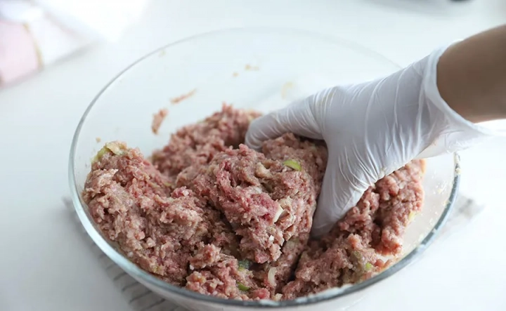 [재료]: 다진소고기 600g, 다진 돼지고기 400g