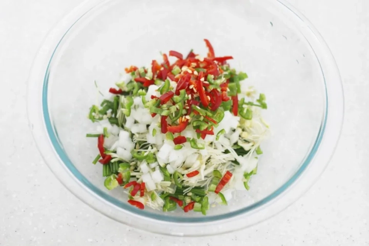 흐르는 물에 여러번 헹궈 물기를 제거한 뒤 쫑쫑 썰어주세요.