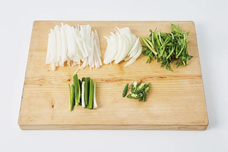 무, 양파, 미나리, 쪽파는 채를 썰고