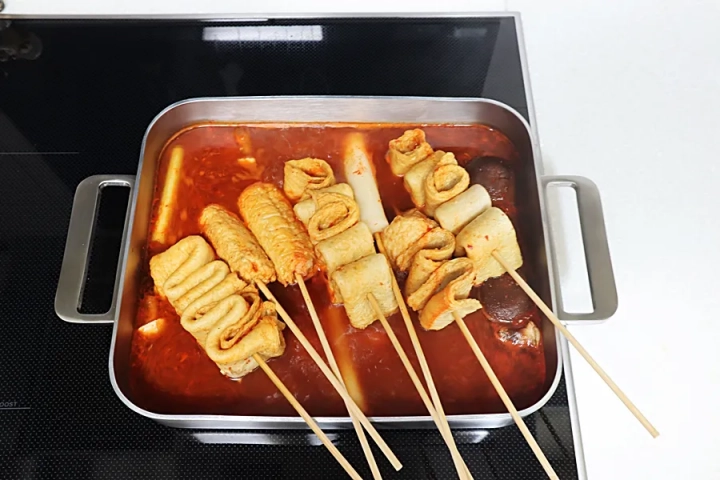 꼬치를 넣어 국물을 골고루 뿌려주면서 끓여주세요.