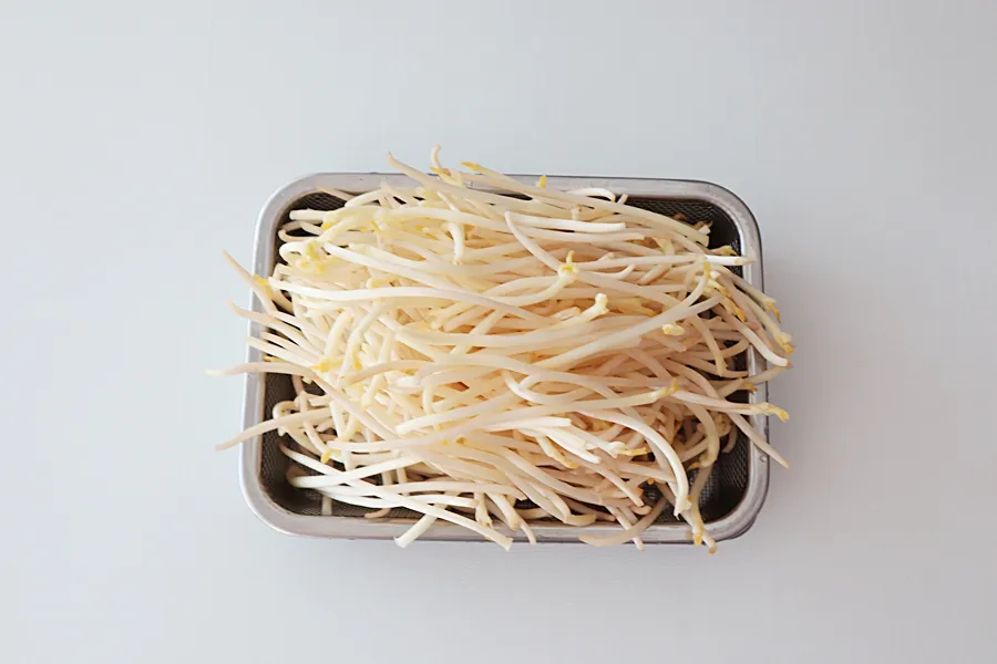한쪽으로 밀어놓고 한쪽에 콩나물을 올려주세요.